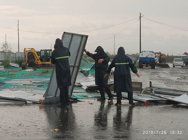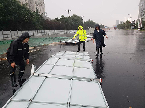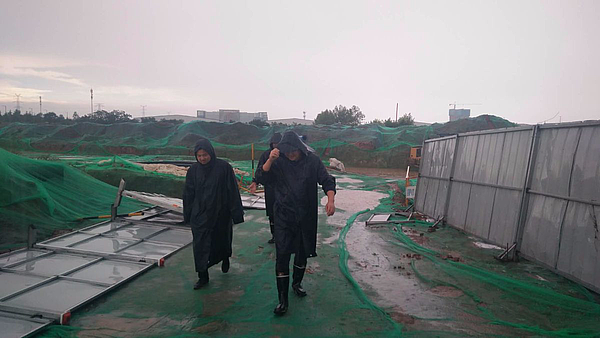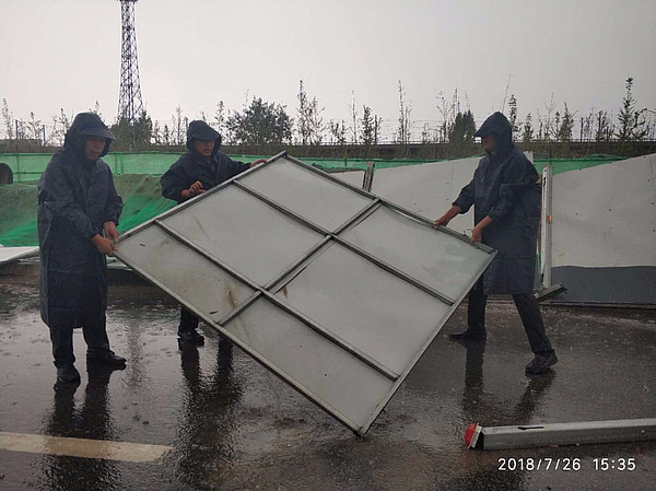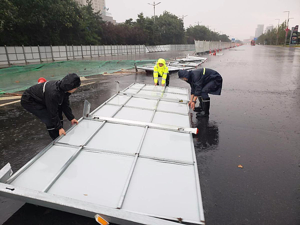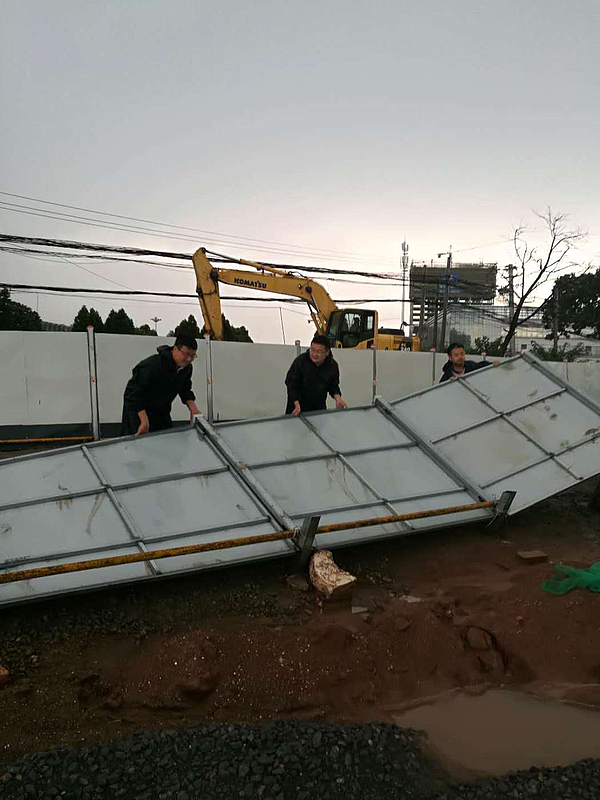 7月26日,突降暴雨。陆港市政配套公司立即组织各工程师项目工地进行安全检查,特别对倒塌的围挡立即进行恢复,保证辖区内道路的畅通及行车安全。